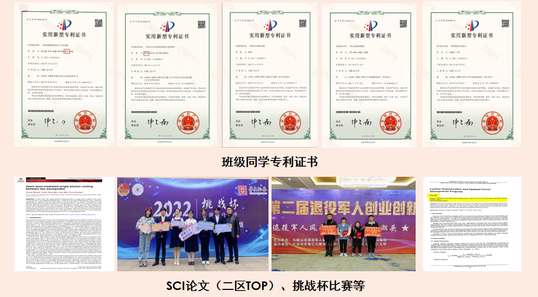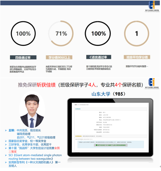 三年来,在学院领导的关心关怀下,在辅导员、班主任及全体同学的努力下,气191班将党建+团建落实、专业+创新落细、爱心+耐心落地,打造了一个有引领力、影响力、创造力的集体。班级3次获得校先进班级荣誉称号,团支部多次获得“五四红旗团支部”、“活力团支部”荣誉称号。班级同学提交入党申请书100%,拥有10名党员,占比25%,为学院班级中最高。班级同学发表SCI论文两篇,其中1篇为SCI二区TOP,申请专利5项,在科技竞赛共获国家级奖项3项,省级奖项11项,班级同学主持国创项目2项,省创项目8项。班级四级通过率100%,C语言省二级通过率100%,今年,专业推免名额共4个,4个名额全部花落该班。