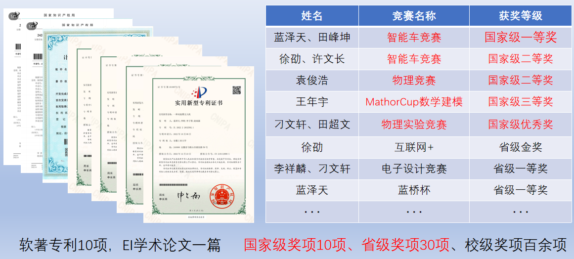 三年来,在学院领导的关心关怀下,在辅导员、班主任及全体同学的努力下,自201班抓引领、固根基、正风气、蕴内涵,打造了一个有信念底色、有担当本色、有发展成色、有青春亮色的集体。班级入党申请书提交率100%,入党积极分子26人,预备党员10人,均为全院最高。班级连续3年获得“先进班集体”、“五四红旗团支部”等荣誉称号。班级同学发表EI学术论文1篇,在各类科技竞赛中获国家级奖项10项,省级奖项30项,校级奖项100余项,软著专利10项,国家级大创6项,省级大创10项。班级四级通过率100%,计算机省二级通过率100%,今年,自动化专业推免名额共6个,6个名额全部花落该班。三年来班级同学0处分、0违纪、0安全事故,0学籍处理。