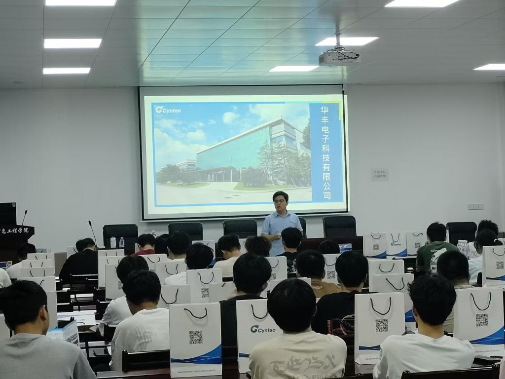 在电气楼113教室成功开展华丰电子科技有限公司暑期实习招聘宣讲会。院党委副书记、纪委书记、副院长孔洋波、辅导员杨恒基及100余名2022级学生参加。