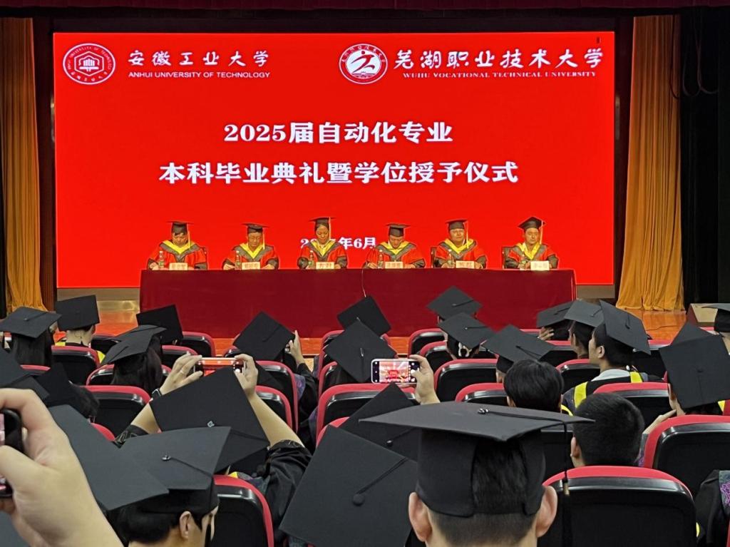 与芜湖职业技术大学联合培养的自动化专业专升本学生毕业典礼在芜湖职业技术大学报告厅隆重举行。PG娱乐城