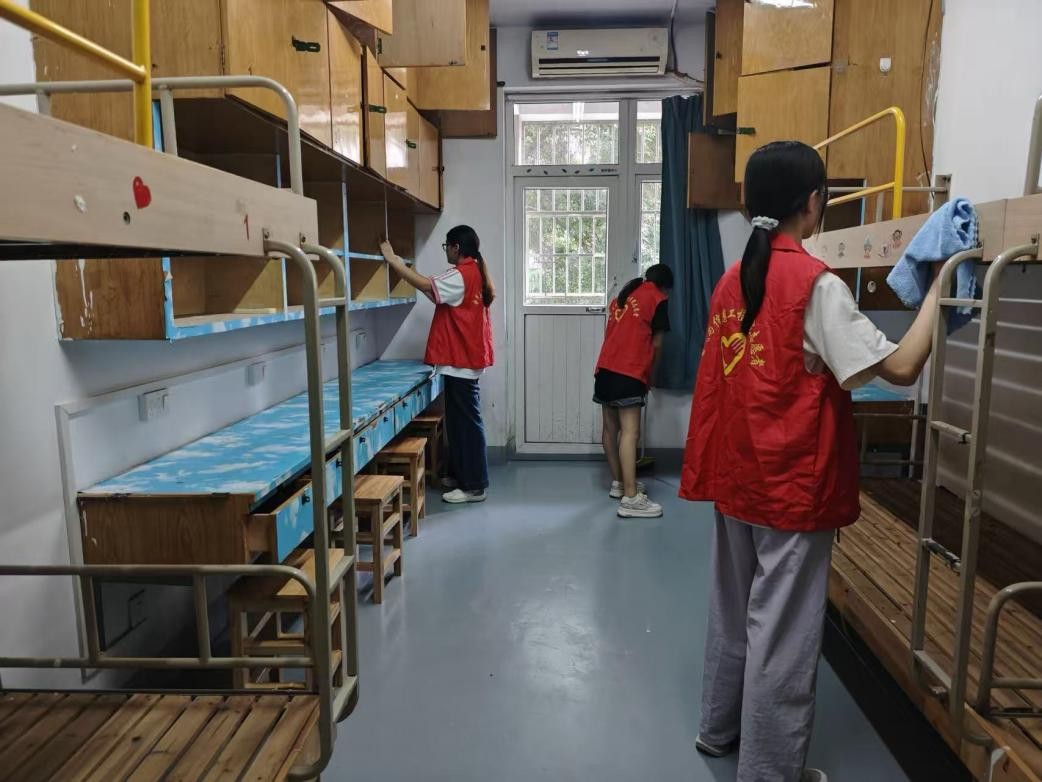 为营造整洁、温馨的住宿环境,学院组织学生党员开展新生寝室清扫行动。大家分工协作、配合默契,工作细致入微:擦拭家具、整理床铺、检查设施、报修处理,尽管汗水浸湿衣衫,热情却始终不减。这次服务行动不仅改善了寝室环境,更传递出学院深切的关怀,让远离家乡的新生第一时间感受到“家”的温暖。同时,这也是一堂生动的劳动教育实践课,进一步强化了党员的服务意识和责任担当。