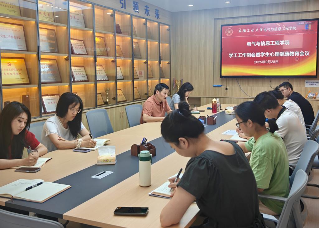 在电气楼308会议室召开学工工作例会暨心理健康教育专题会议,围绕新学期学生管理和心理健康等重点工作作全面部署。学院党委副书记、纪委书记、副院长孔洋波主持会议,全体辅导员参会。