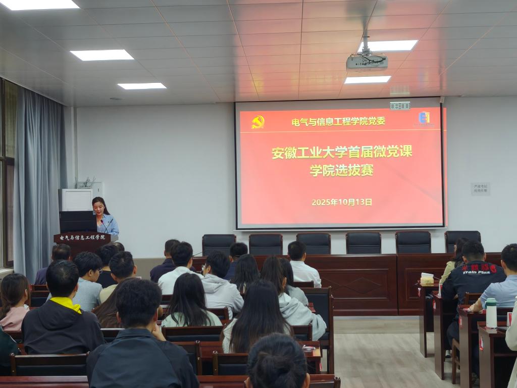 为深入学习贯彻习近平新时代中国特色社会主义思想,推深做实“三会一课”制度,创新党支部理论学习形式。根据学校部署与要求,学院于10月13日在电气楼113室举办学校首届微党课学院选拔赛,校学工部部长赵龙、校宣传部副部长黄敏、马克思主义学院副教授陆书建、学院党委书记丁忠利以及学院党委副书记孔洋波担任比赛评委。学院班子成员、支部书记和师生党员代表现场观摩学习。