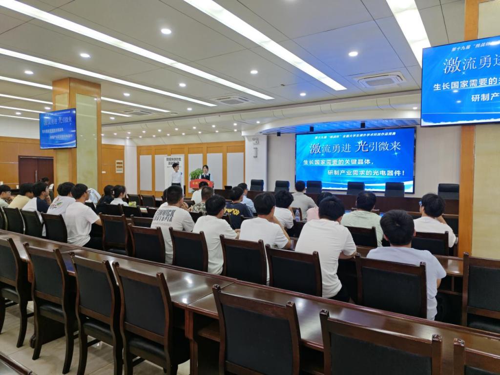 在会议中心二楼报告厅精心组织了国赛入围团队的答辩模拟演练现场观摩活动。本次活动由“挑战杯”竞赛指导老师、学院辅导员以及“挑战杯”金奖获得者代表担任模拟评委,三支入围国赛团队及部分学生代表参加。