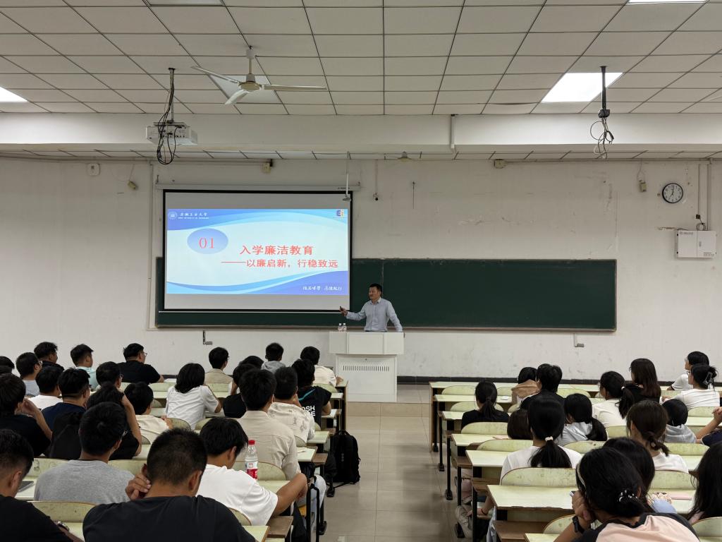 为帮助2025级新生尽快适应大学学习生活,树立规则意识,规范日常行为,10月17日,学院在教三南103、203教室举办了新生校规校纪教育暨廉洁教育专题讲座。本次讲座由学院党委副书记、纪委书记、副院长孔洋波主讲,全体2025级新生参加。