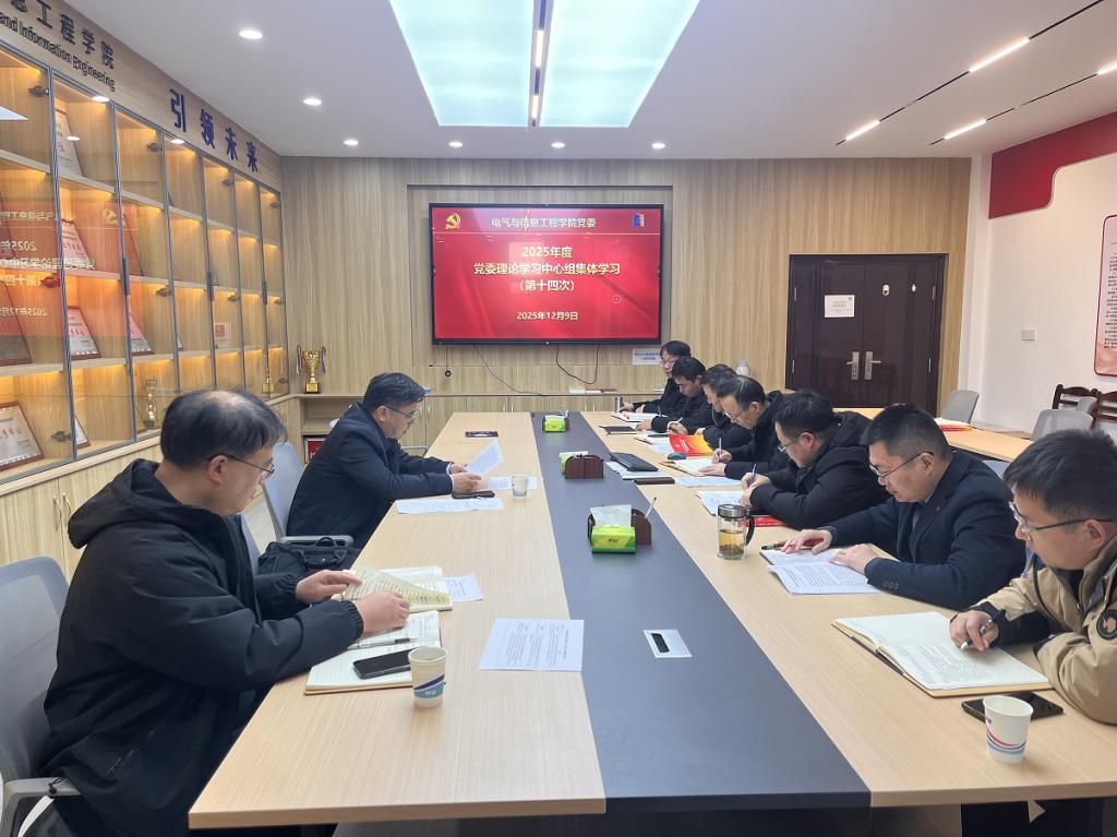 在听取学习与交流研讨后,郑啸对学院党委理论学习中心组的学习给予了充分肯定,认为学习安排有序,主题鲜明,研讨深入,坚持了理论学习的政治站位和实践导向。他指出,学院要将学习宣传党的二十届四中全会精神作为当前和今后一个时期的首要政治任务,深刻领悟“两个确立”的决定性意义,增强“四个意识”、坚定“四个自信”、做到“两个维护”,切实把思想和行动统一到党中央决策部署上来。就进一步抓实抓好党委理论学习中心组的学习,郑啸提出四点要求:一要提高政治站位,深化理论武装,筑牢思想根基。要始终把政治建设摆在首位,深刻认识到党委理论学习中心组学习的重要性和紧迫性,以高度的政治自觉强化党的创新理论学习,在持续深化学习中坚定理想信念,提升驾驭复杂局面的能力本领。二要强化学以致用转化,提升发展质量。要聚焦学院改革发展中的重点难点问题,将理论学习与破解发展瓶颈、推动学科建设、提升人才培养质量等实际工作紧密结合,切实把学习成效转化为谋划思路、发展举措和解决问题的能力,以高质量学习助力学院各项事业高质量发展。三要完善学习机制,创新学习方式,增强学习实效。要持续健全常态化和制度化的学习机制,创新学习载体和形式,综合运用专题研讨、实地调研、专家辅导、线上学习等多元化方式,增强学习的吸引力、针对性和实效性,全面提升学习的质量与水平。四要持续汇聚共识,凝聚奋进力量。要持续推动理论学习走深走实,以党的创新思想引领行动,围绕学校第五次党代会确立的目标任务,主动担当作为,积极贡献智慧和力量,为学校事业发展书写电气的精彩篇章。