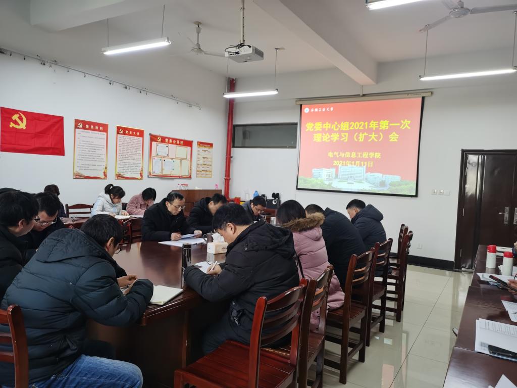 1月11日上午,电气学院党委中心组召开2021年第一次理论学习(扩大)会,学院党政领导、党委委员、党支部书记、系室中心主任、科级干部和全体辅导员参加会议,院党委书记丁忠利主持会议。