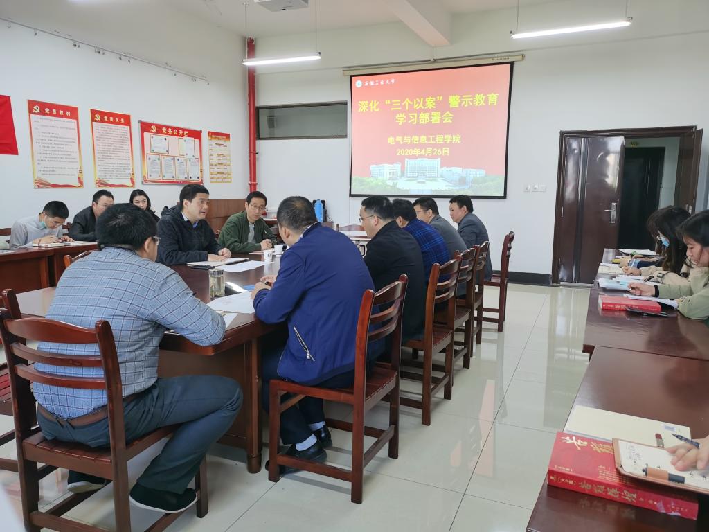 4月26日上午,电气学院召开党委(扩大)会和中心组学习会议,对学院深化“三个以案”警示教育进行专题学习部署。校第一督导组到会指导。学院领导班子成员、副处级辅导员、党委委员、科级干部、党支部书记和全体辅导员参加会议。会议由院党委书记叶凤华主持。
