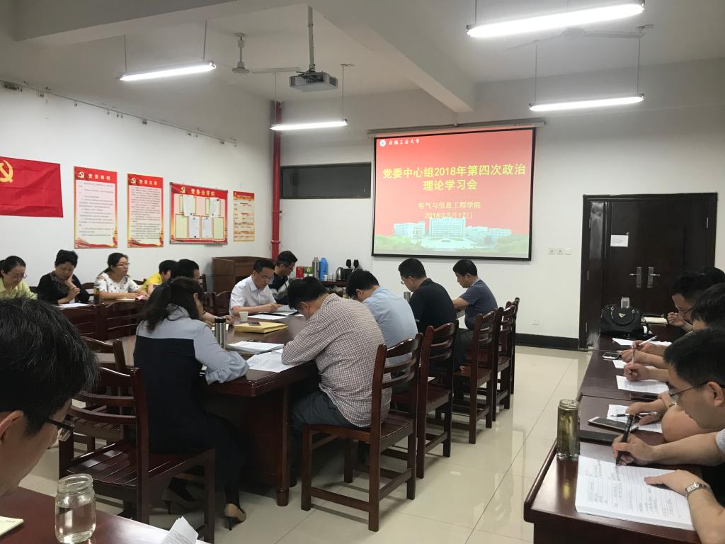 5月17日上午,电气学院党委在电气楼304会议室召开2018年中心组理论学习第四次(扩大)会议。学院党政领导、党委委员、党支部书记、各系室中心主任、科级干部、工会主席和全体辅导员参加会议,会议由院党委书记叶凤华主持。