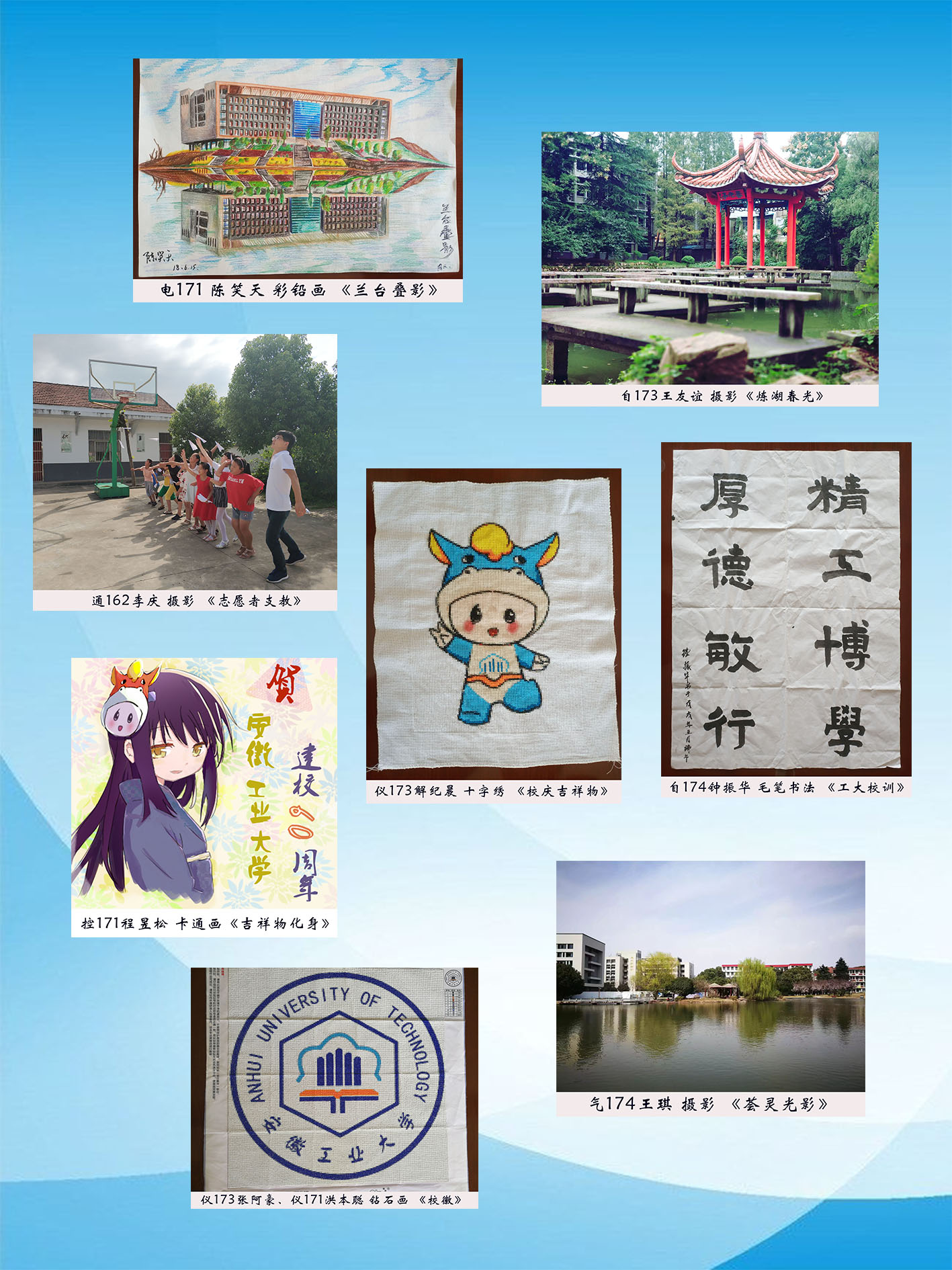 院团委学生会负责组织各年级各班级精心策划、广泛动员,深入挖掘有艺术才能的学生,充分调动大家参与本次活动的积极性、主动性、创造性。各年级学生踊跃参与、认真准备,以摄影、彩铅画、十字绣、钻石画、卡通画、书法、剪纸等多种艺术形式展示学校校徽、校训、校庆吉祥物,呈现校园风景、人物和故事。一幅幅倾注了电气学子热情和心血的作品,记录着大家的工大印象,彰显了大家的青春风采。从征集到的100多幅作品中,学院评选出一等奖1件、二等奖3件、三等奖5件、优秀奖8件。