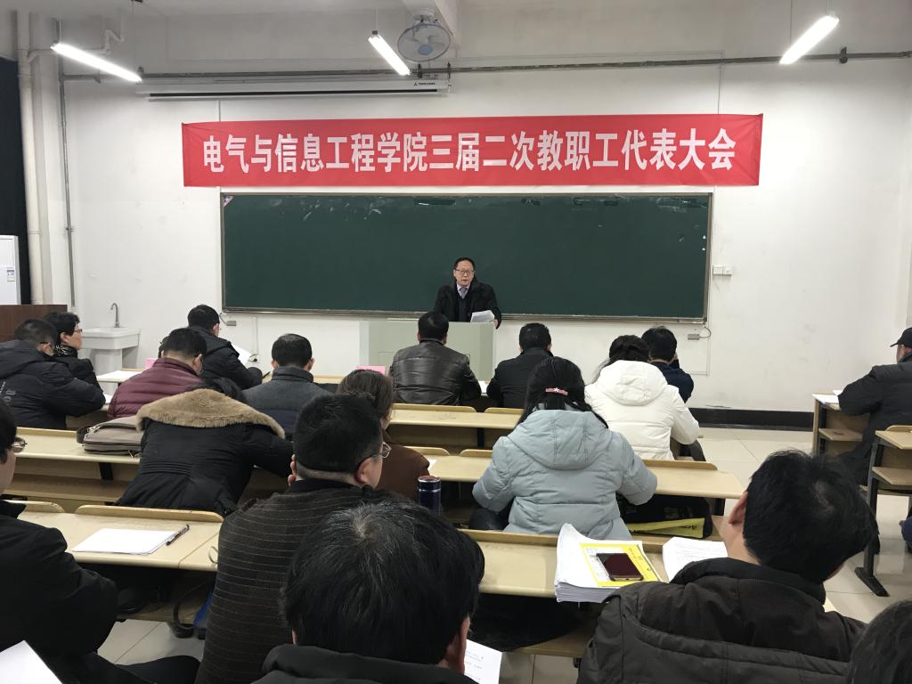 在电气楼112召开了三届二次教代会,副校长葛芦生和校工会主席赵保平应邀出席会议,学院领导以及38位正式代表与列席代表参加了本次会议,会议由院党委副书记郭宏主持。