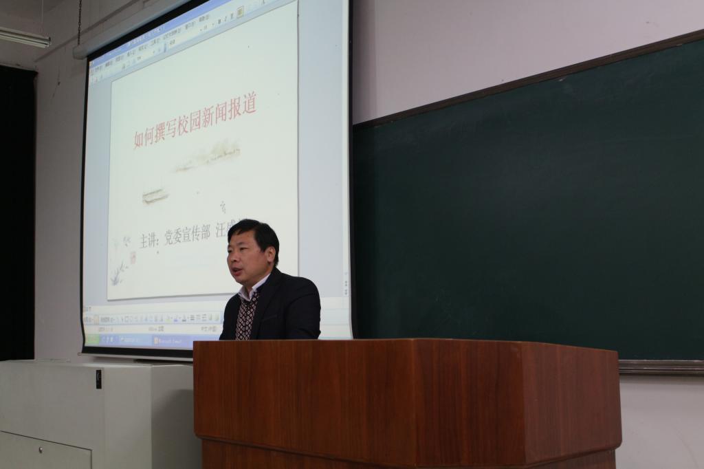 本次讲座汪老师从“新闻是什么”“新闻的组成部分”和“新闻的写法”三个方面向大家着重介绍了新闻稿的基础知识和新闻稿的构成。他向在座同学提出了几点“切忌”,并指出常见写稿时容易出现的错误。汪老师列举了一系列案例,通过讲解、现场修改,让同学们更加深刻地了解了新闻稿的写法与写作技巧。此外,他与大家分享从叙事作文到新闻稿自由切换的技巧,并且重点指出二者之间的区别,以杜绝大家在今后撰写新闻稿时易出现的错误。汪老师每一次逆转式地修改都会引起同学们惊叹声连连与阵阵掌声。培训会上,同学们全神贯注,认真学习并做好笔记。