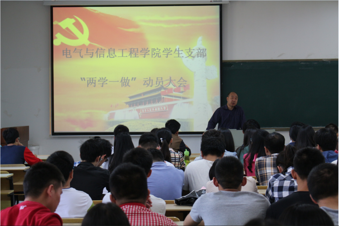 5月11日下午,电气学院召开学生支部“两学一做”动员大会。院党委副书记、副院长郭宏、团委书记孔洋波、全体辅导员、全体学生党员参与活动。会议由张敏老师主持。