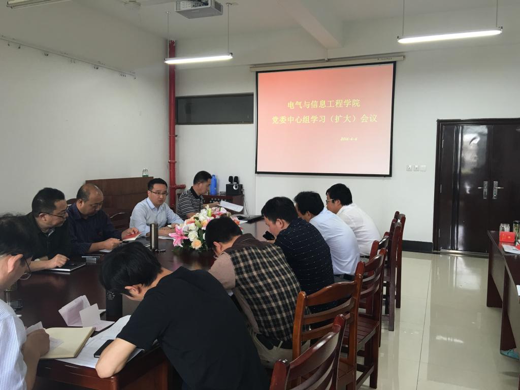 在电气楼304会议室召开党委中心组学习(扩大)会议,开展“两学一做”学习教育。全体院领导、系室中心主任、支部书记、全体科级干部及辅导员老师参加了学习会。