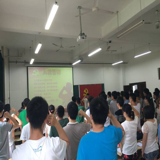 仪式庄严的国际歌声中开始,郭宏首先介绍了学院学生支部党员发展情况,通报了新党员名单。电子通信学生支部新党员电121班方世玉同学作为新党员代表发言,他代表所有的新党员向党组织表达了提升自己思想政治修养和发挥先锋模范作用的决心。随后,在自动化学生支部党员自123班金豪杰同学的带领下,51名新党员面对鲜红的党旗进行入党宣誓,到会的老党员重温入党誓词。短短的一百多字,是党员对组织最初的,也是一生的承诺。