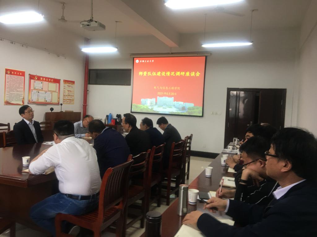 魏先文指出,教师是立教之本,兴教之源,师资队伍建设是学院发展的基础性工作,在充分肯定电气学院近年来改革发展与人才队伍建设方面取得成绩的同时,就学院下一步发展提出了具体要求:一是坚持党建引领,谋划和落实好学院“十四五”发展规划,把握教育发展规律,强化目标引领,积极争先进位;二是持续加大高层次人才建设力度,强化学术团队建设,搭建青年教师成长平台,不断夯实学院的人才梯队;三是坚持以学科建设为龙头,以工程教育专业认证和一流专业建设为抓手,以教师和学生发展为中心,进一步提高学院的办学水平和育人质量。