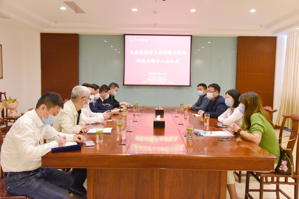 的专业优势,把集团电气制造部的智能化建设提升到一个新的水平。在入站仪式上,双方就建站工作开展了富有成效的交流。钱牧云博士表示非常感谢集团公司提供的平台,并珍惜在集团从事博士后研究的工作机会,不断挖掘自身创新潜能,将先进的学术研究成果与集团的生产实践有机结合起来,积极联合学院相关学科研究团队,早日实现高水平的科研成果,为安徽天康集团的绿色发展、创新发展和可持续发展贡献一份力量。