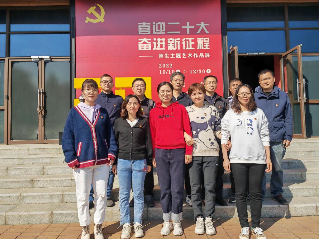值此党的二十大胜利召开之际,10月20日上午,电气与信息工程学院实验中心教工党支部组织党员和老师参观学校设计艺术馆里的“喜迎二十大,奋进新征程”师生主题作品展。