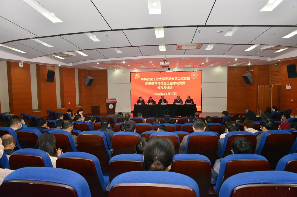 党委情况反馈会在秀山校区振华图书馆大明报告厅召开。校党委常委、副校长刘明,校党委巡察办主任洪芳、校党委第二巡察组组长、校纪委委员、科研处处长王孝义,巡察组副组长、组织部副部长陈云亮以及巡察组全体成员、学院党政领导班子成员和全体教职工参加了巡察工作反馈会,会议由学院党委书记丁忠利主持。