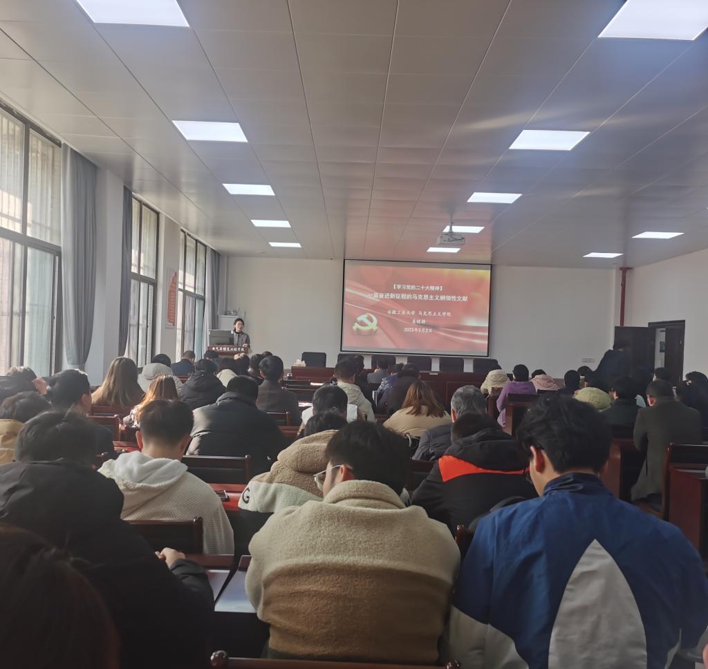 举办学习宣传贯彻党的二十大精神专题报告会,特邀校党委讲师团成员、马克思主义学院姜晓静老师作了题为《一篇奋进新征程的马克思主义纲领性文献》的专题报告,学院全体教职工、学生代表参加了本次报告会。