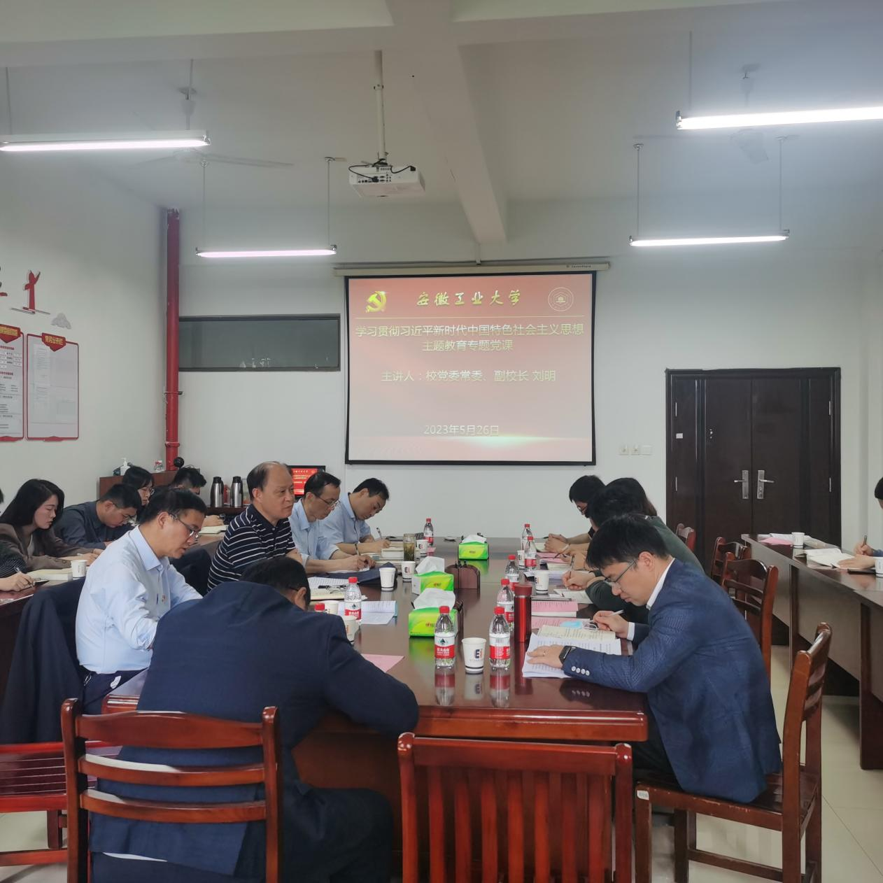 在专题党课环节,刘明按照主题教育专题党课“四个讲清楚”要求,从“习近平新时代中国特色社会主义思想的科学体系、核心要义、实践要求以及贯穿其中的立场观点方法”、“党的二十大的战略部署和目标任务”、“习近平总书记在考察安徽、考察马鞍山的重要讲话和重要指示批示精神”和“学校贯彻落实的具体举措”四个方面进行了详细阐述,整个党课内涵丰富,深入浅出,具有很强的针对性、启发性和指导性。
