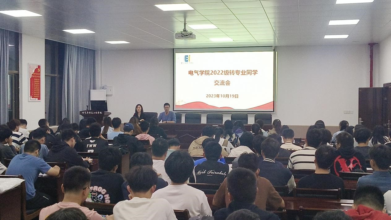 于电气楼113教室召开2022级转专业同学交流会,会议由2022级辅导员甘如美江、杨恒基主持,全体2022级转专业学生参加。