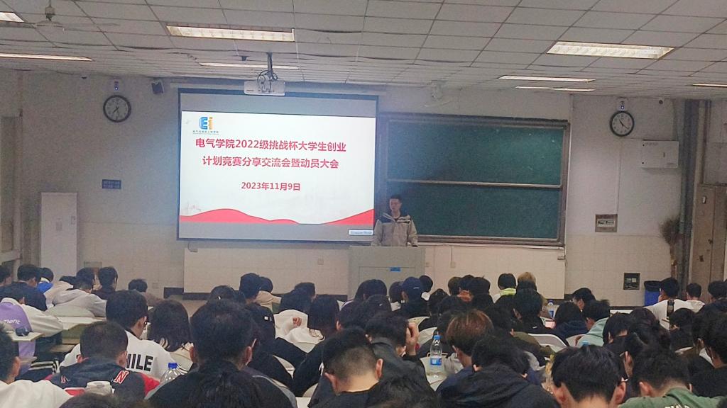 在秀山校区阶教105室举办“挑战杯”大学生创业计划竞赛分享交流会暨动员大会。会议由院团委副书记、2022级辅导员杨恒基主持,2022级同学参加。