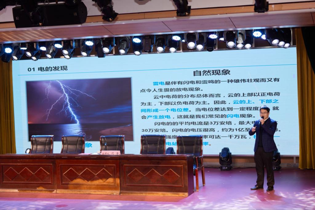 随后,沈浩为现场师生带来首场红领巾科普教育大讲堂《电的世界》,他结合生动的幻灯片、动画和视频等资料,细致地为孩子们讲解电的发现、电的应用、电的安全知识和电的未来发展等内容,回答了孩子们踊跃的提问,让孩子们感受到了科技进步改善人类生活的魅力,激发了孩子们对科学探索的兴趣,受到孩子们的热烈欢迎。