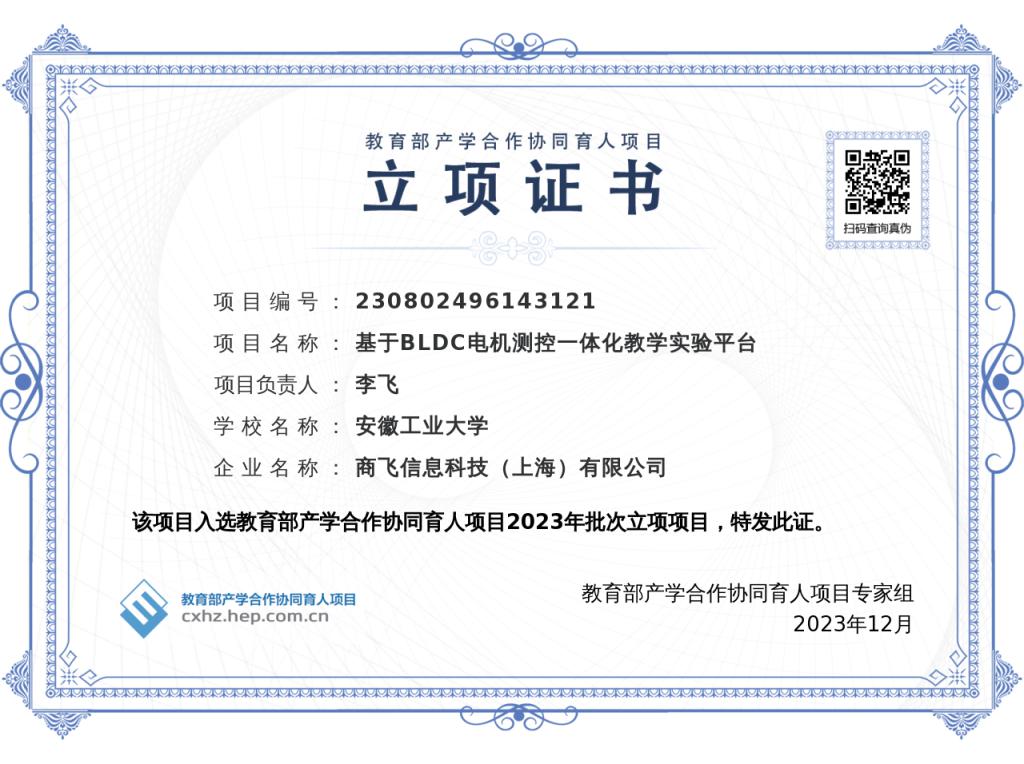 程木田教授申报的“依托安徽省大学生电子设计竞赛的学生创新能力培养及竞赛实践”、李飞副教授申报的“新工科背景下自动化专业建设的探索与实践”和“基于BLDC电机测控一体化教学实验平台”入选教育部产学合作协同育人项目2023年批次立项项目。