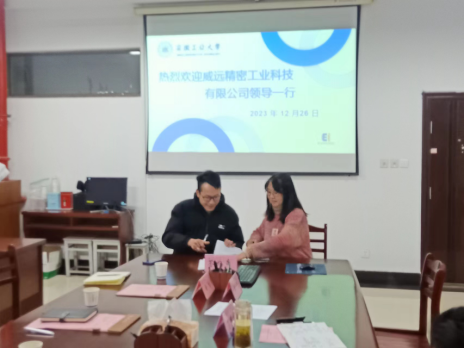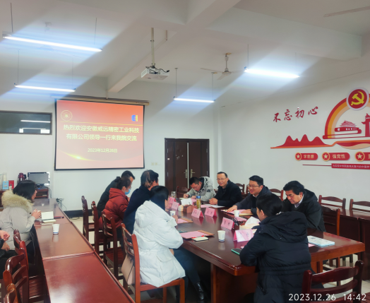 12月26日,安徽威远精密工业科技有限公司开展产学研合作交流,公司董事长李一前、设备工艺经理徐金、商务经理葛晴、人事科长朱敏、PG娱乐城