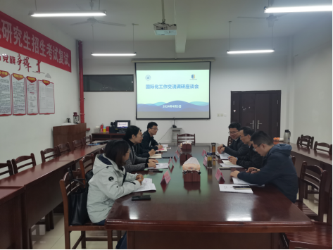 4月3日,国际合作与交流处处长曹瑞斓、副处长樊永刚、国际交流科科长陈国欢、综合管理科副科长李东阳一行4人来院开展国际化办学调研工作。学院党委书记丁忠利、院长沈浩、副院长程木田、李飞参加调研座谈会。
