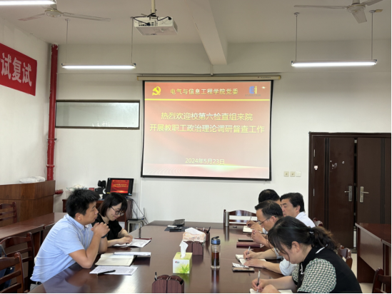5月23日,校党委宣传部副部长黄敏、宣传教育科科长张苒一行来院开展教职工政治理论学习情况调研督查,学院党委书记丁忠利、党委副书记李克明、测控党支部副书记刘升和非党员教师代表丁易新参加会议。