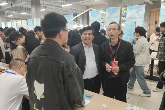 2025届毕业生稳就业和早就业,推动就业工作目标落到实处,在校的院领导丁忠利书记、李克明副书记和毕业班辅导员深入双选会现场指导毕业生就业工作。