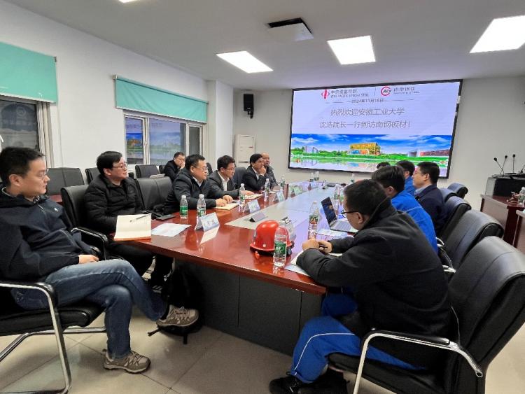 为了进一步深化校企合作,推进有组织科研,服务行业科技进步和学科专业建设。11月18日,学院院长沈浩教授、副书记李克明、科研副院长程木田教授等一行赴南京钢铁集团有限公司推进产学研对接活动,旨在加强双方在冶金技术领域的先进技术应用合作研究。南钢集团总裁助理、制造部部长王润泽、板材事业部总经理周桂成、中厚板卷厂领导等参加对接交流活动,活动由板材事业部设备处处长程鑫祥主持。