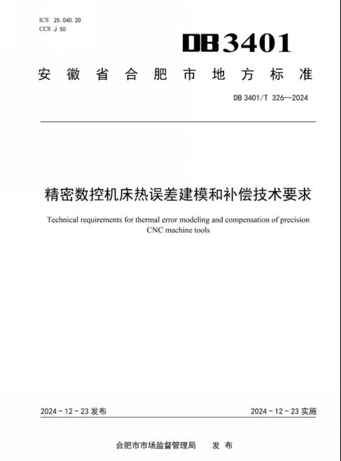 教师牵头编制的合肥市地方标准《精密数控机床热误差建模和补偿技术要求》(DB3401T 326—2024)正式发布实施。PG娱乐城