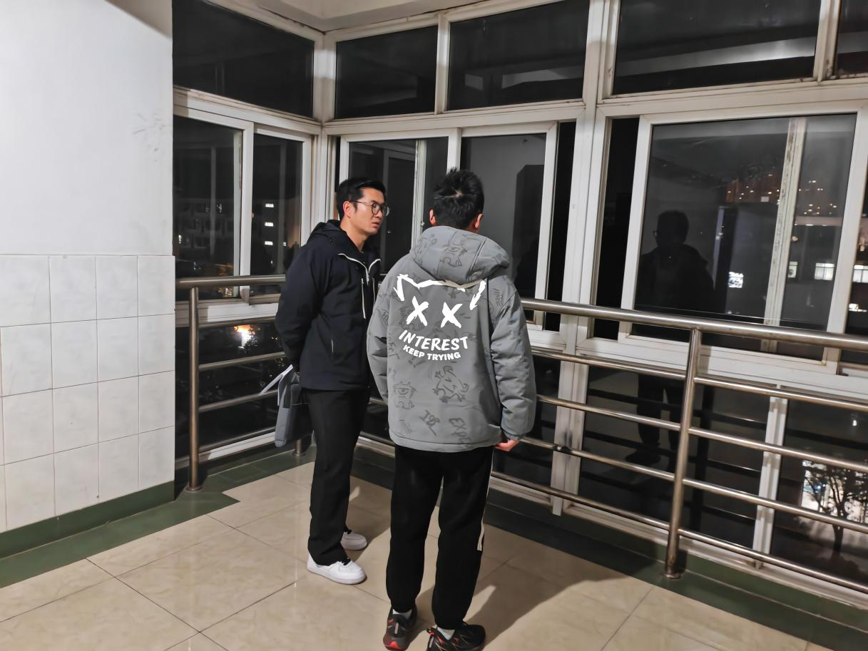 23级辅导员蒋安东、张悦深入学生寝室,对即将参加补考的学生进行走访交流,送上暖心关怀与诚信叮嘱。