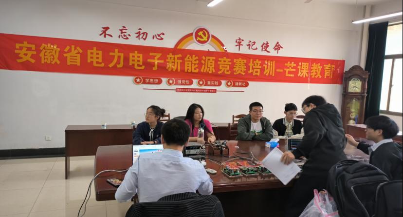 安徽省电力电子新能源学科竞赛是一项以电力电子技术应用为对象,以创新创造、节能减排以及新能源利用为主题的创意性科技竞赛,主要面向我省高校广大学生,具有较高的探索性、实践性和应用性。今年该赛事首次纳入到安徽省机器人大赛单片机及嵌入式系统赛道E平台。本次培训内容非常丰富,芒课教育科技的技术专家从专业理论储备要求和实战实操能力要求两个方面进行讲解,涵盖电力电子基础知识、设计原理、仪器实践操作等多个方面,为参会学生提供了系统的学习和实践机会。在培训过程中,参赛队员们积极参与,认真学习,勤于思考,主动与培训教师团队交流互动。通过培训课程的系统学习和实践操作,学生们进一步巩固了专业知识,提升了实践技能,激发了创新潜能。学院将根据培训后学生的实际表现,选拔优秀学生组建参加省赛,为竞赛取得优异成绩奠定坚实基础。