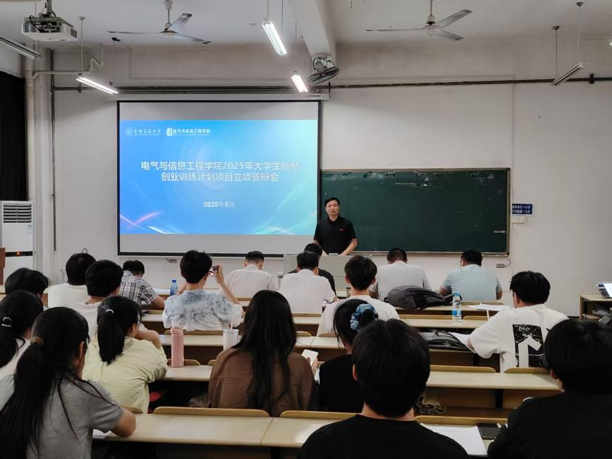在电气楼112教室组织开展2025年大学生创新创业训练计划项目立项答辩会。本次会议由院团委副书记杨恒基主持,学院副院长张前进及各系主任担任评委。