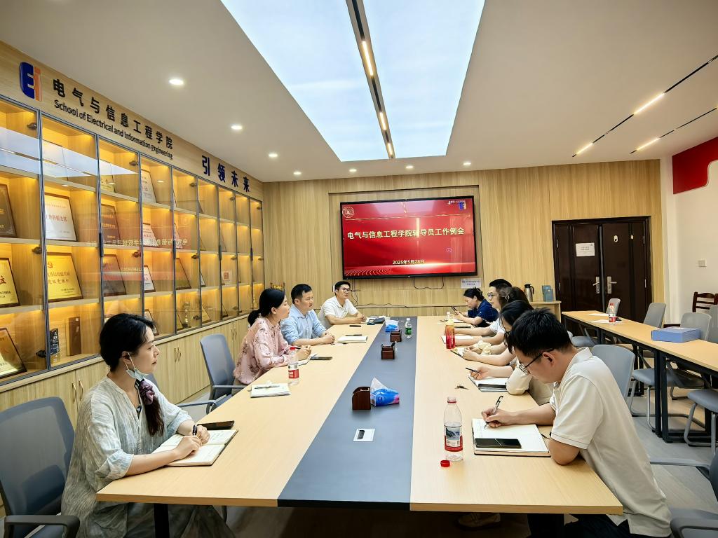 于电气楼308室召开学生工作例会,会议由学院党委副书记、纪委书记、副院长孔洋波主持,办公室主任李蕾和全体辅导员参加会议。