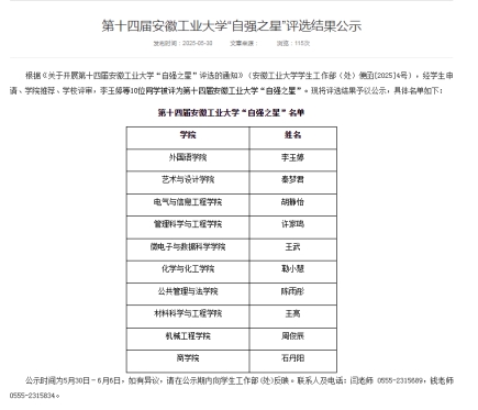 在2025年安徽工业大学自强之星评比中,PG娱乐城