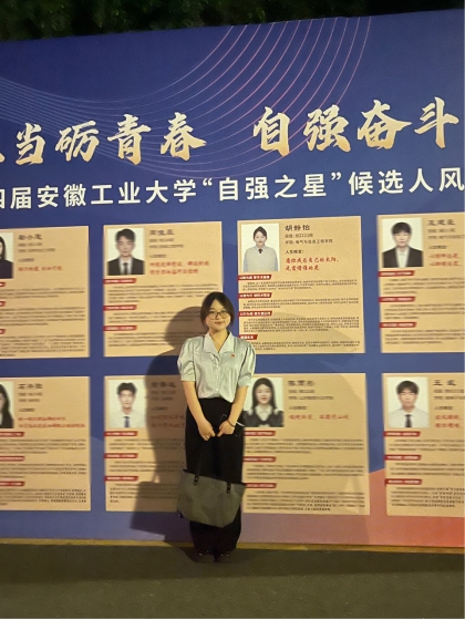 学子胡静怡获2025年安徽工业大学第十四届“自强之星”荣誉称号。