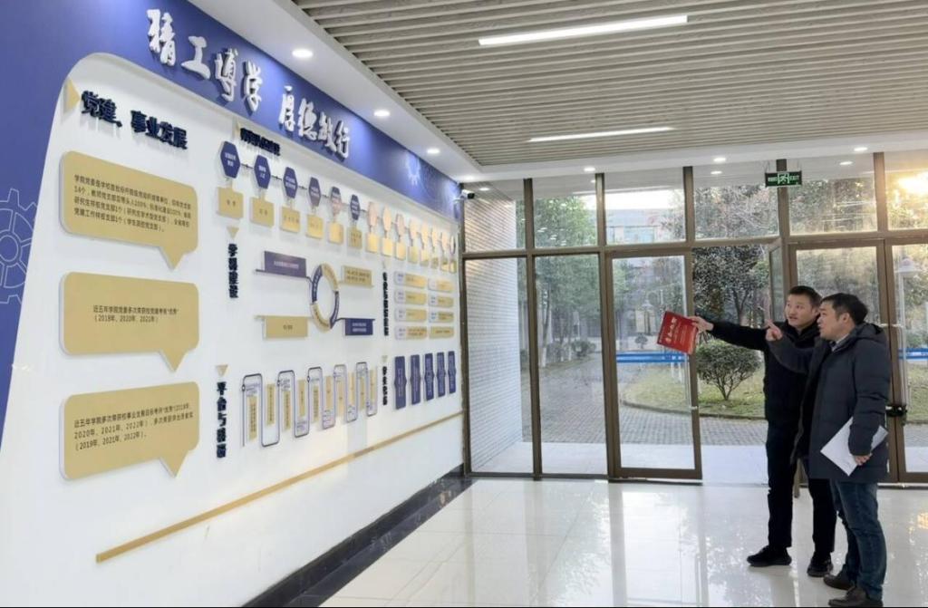 会前,周祥银校友参观了学院文化展厅,孔洋波介绍了学院近年来在学科建设、师资队伍、人才培养成果及科研创新等方面取得的显著成就,希望今后进一步加强与校友企业在产学研、学生实践实训等方面的交流与合作,促进共同发展。