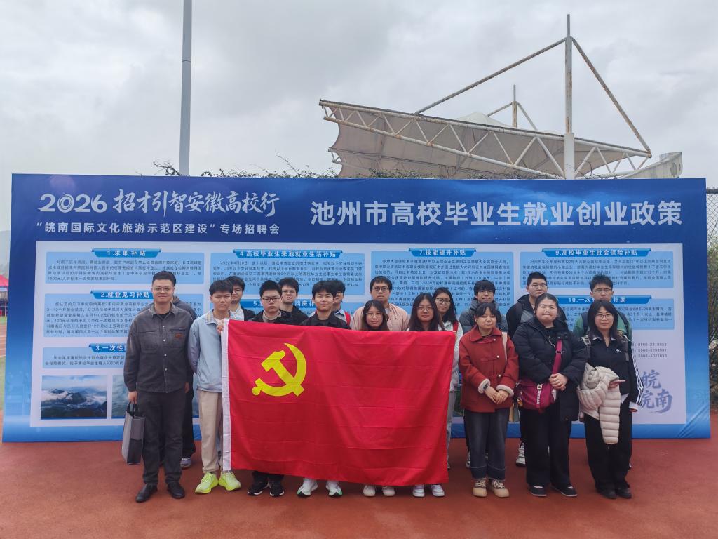 为深入学习贯彻党的二十届四中全会精神,发挥党建引领,促进毕业生就业,搭建平台指导毕业生深入地方企业,了解地方引才政策,把握就业机遇。3月27日,学院学生测控党支部组织毕业生党员和入党积极分子、2026届未就业学生代表赴池州市开展“党建赋能・助梦启航”促就业活动,实地走访参加招才引智安徽高校行之“皖南国际文化旅游示范区建设”专场招聘会。
