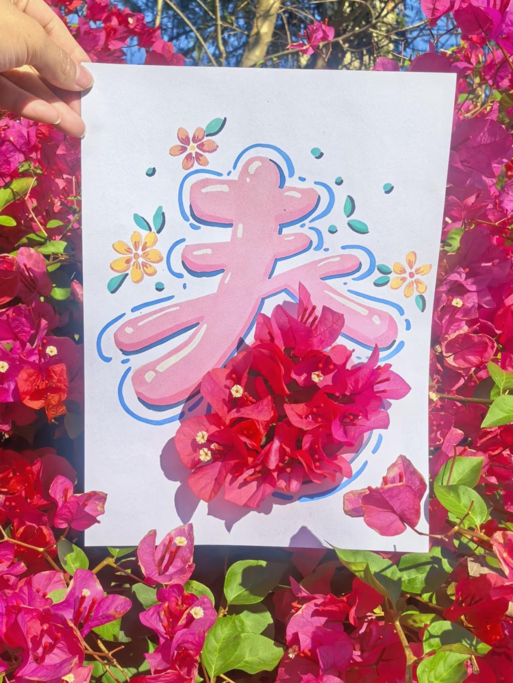 活动中,同学们发挥创意,通过手绘、裁剪等方式制作出属于自己的春日画框,形状各异,有俏皮动物造型,也有“春”字镂空图样。大家用画框定格身边的春日片段——校园里新芽初绽、窗台光影斑驳,抑或居室一隅的绿意生机,皆成为镜头中的温暖画面。随后,同学们为作品配上简练的心情文案或自我鼓励的话语,如“一草一木皆成风景”“继续走,花会一路开”“春光明媚,你也值得”,在观察与记录中,将春日的温柔转化为内心的宁静力量。