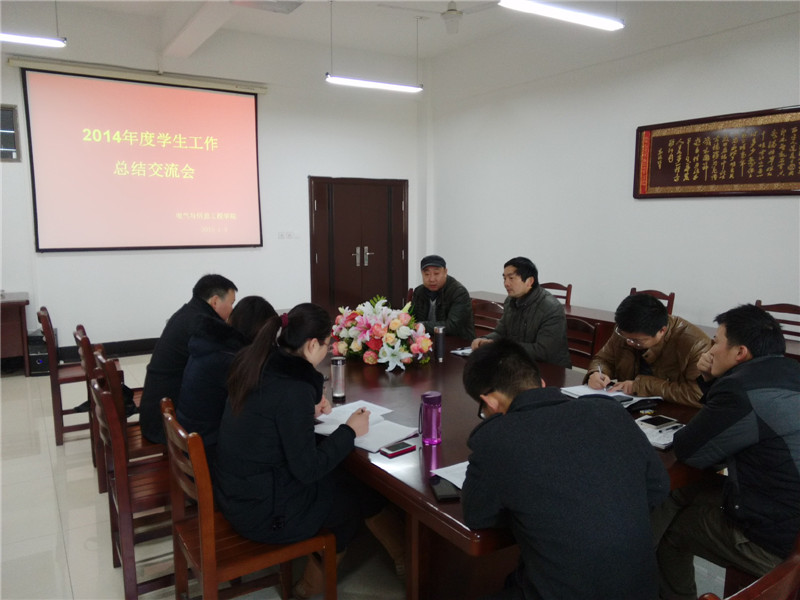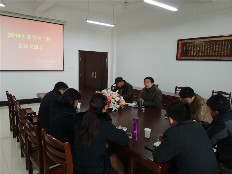 在电气楼304会议室召开了2014年度学生工作总结交流会。学院党委书记黄国才、副院长郭宏,全体辅导员参加了会议,会议由郭宏主持。