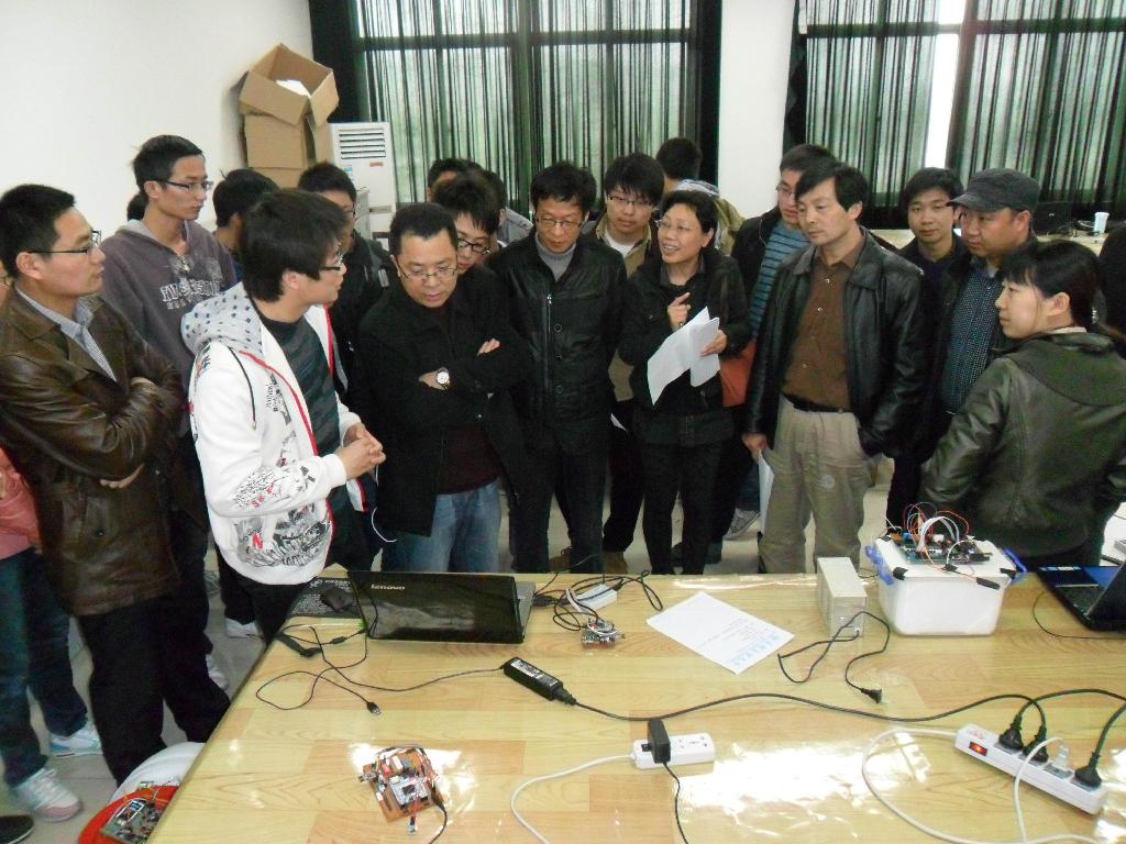 为了进一步推进大学生课外科技活动深入开展,启发学生的创新思维,调动低年级学生创新学习的主动性、积极性,4月23日下午,电气信息学院举行了SRTP结题项目的实物展示和评审工作。学院党委书记黄国才,副院长聂建华、章家岩、郭宏和部分低年级学生代表参加了此次活动。