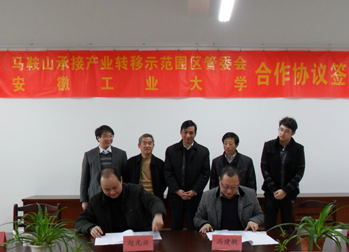 电气信息学院院长赵光兴和马鞍山承接产业转移示范园区管委会副主任冯建敏分别代表双方在合作协议上签字。