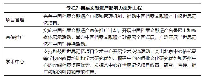26.积极参与联合国教科文组织世界记忆项目。加强与联合国教科文组织世界记忆项目秘书处和国际咨询委员会合作,积极参与世界记忆项目亚太地区委员会各项活动。加强统筹谋划,促进入选文献研究和宣传推广。促进世界记忆项目与联合国教科文组织其他遗产项目协同发展。发挥世界记忆项目北京、福建和苏州等学术中心作用。实施档案文献遗产影响力提升工程。