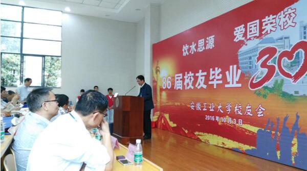 10月3日上午,86届校友毕业30周年集中交流会在佳山校区举行。受李家新校长委托,副校长、安徽工业大学教育发展基金会理事长林钟高出席会议并致辞。他在简要回顾学校30年来的发展变化,介绍学校在人才培养、科学研究、社会服务等方面取得的成绩后,动情地说,三十年的别离,三十年的牵挂,无论校友身在何处、业执哪行,都直接或间接地在为母校作贡献;校友走多远,学校的疆域就有多远;校友在哪里,安徽工业大学就在哪里。他希望校友们心怀“饮水思源爱国荣校”之情,共担“一个校友一面旗帜”之责,关心、关注和参与学校治理,与母校同发展共进步,欢迎校友们常回家看看。