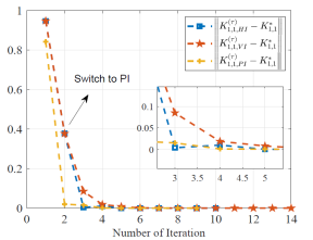 (不同迭代学习机制下控制增益收敛对比图)